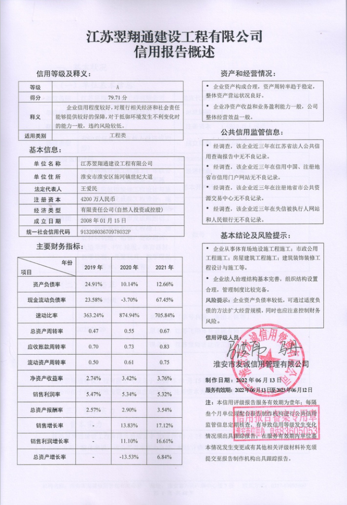第一屆“淮安市誠信示范企業(yè)評選活動”